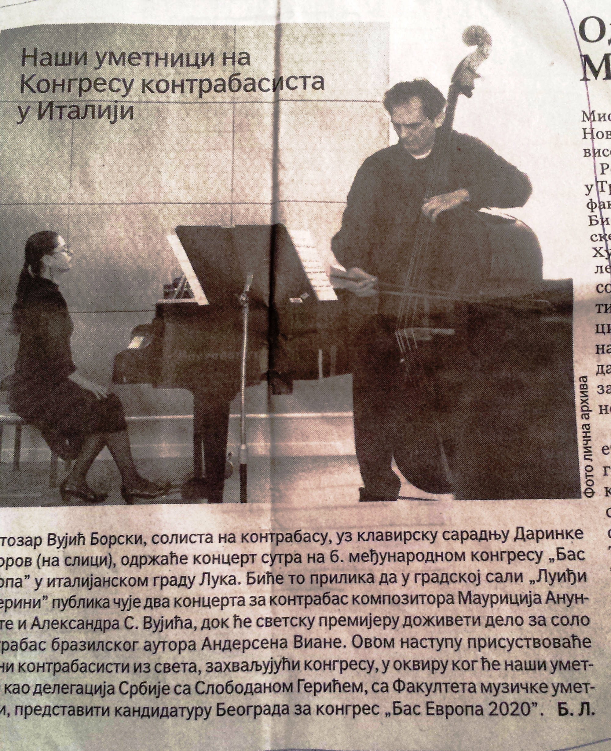 Светозар Вујић Борски - контрабасДаринка Тодоров - клавир
